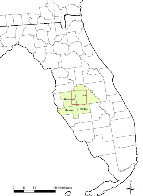 In Florida, phosphate mining began in the 1880s. The region of Florida known as Bone Valley is still considered one of the most economically accessible phosphate deposits in the world. The name Bone Valley comes from fossilized bones of prehistoric creatures found in its soils. Bone Valley covers part of four counties including Hardee, Hillsborough, Manatee, and Polk. It is the nation’s largest known source of phosphates, accounting for more than 60 percent of U.S. production. Of the 1.3 million acres in Bone Valley, more than 440,000 acres are owned by the phosphate industry, and 3,000 – 6,000 acres are mined annually (Florida Department of Environmental Protection (DEP), 2015; Florida Industrial and Phosphate Research Institute). Mining in Florida has moved south since it began.